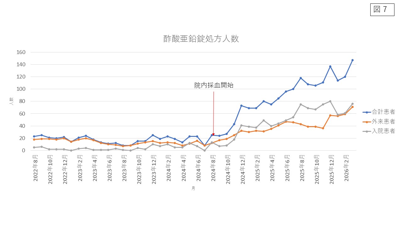 当院の亜鉛採血件数・亜鉛製剤処方数・科別オーダー
