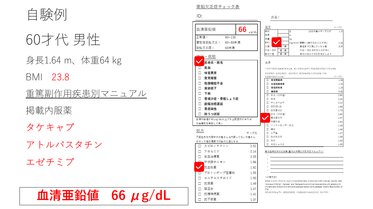 「亜鉛欠乏症チェック表」を完成させ、亜鉛採血をしてみると。