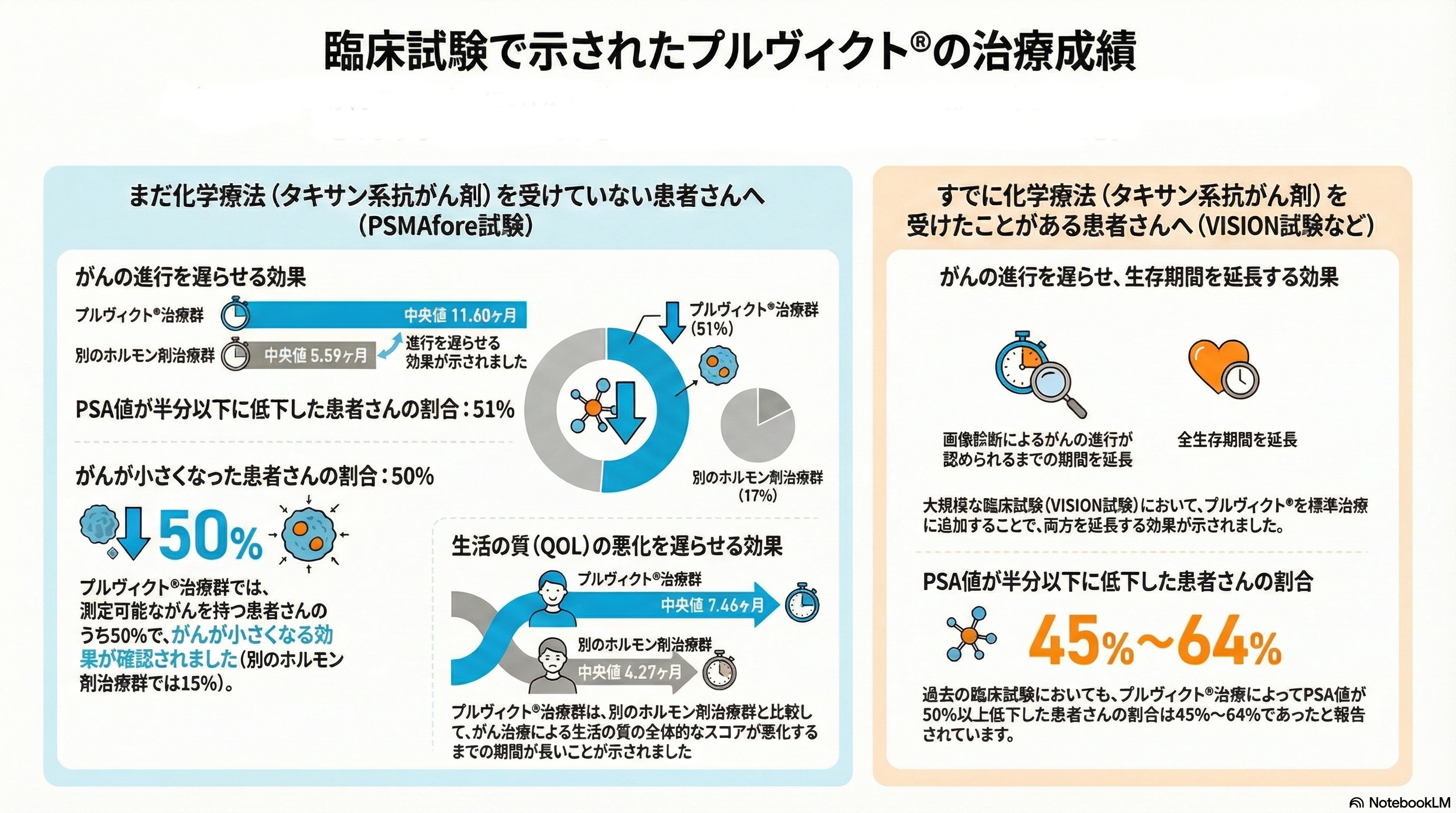 - 効果の予測因子: 治療前のPET検査にて陽性の部位が多いほど、より高い治療効果が得られる傾向にあります。
