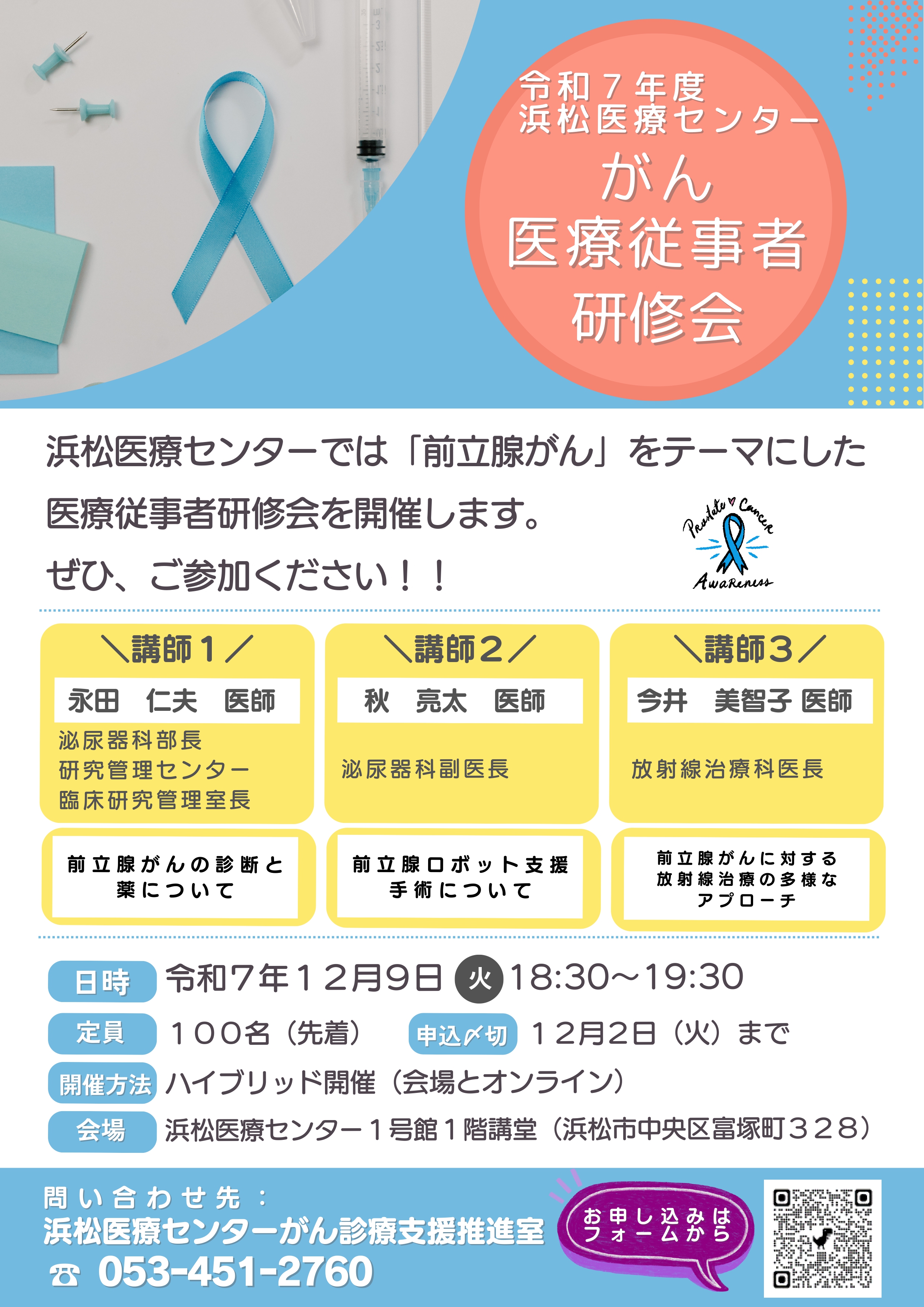 浜松医療センターでは、前立腺がんをテーマとした「がん医療従事者研修会」を開催します。