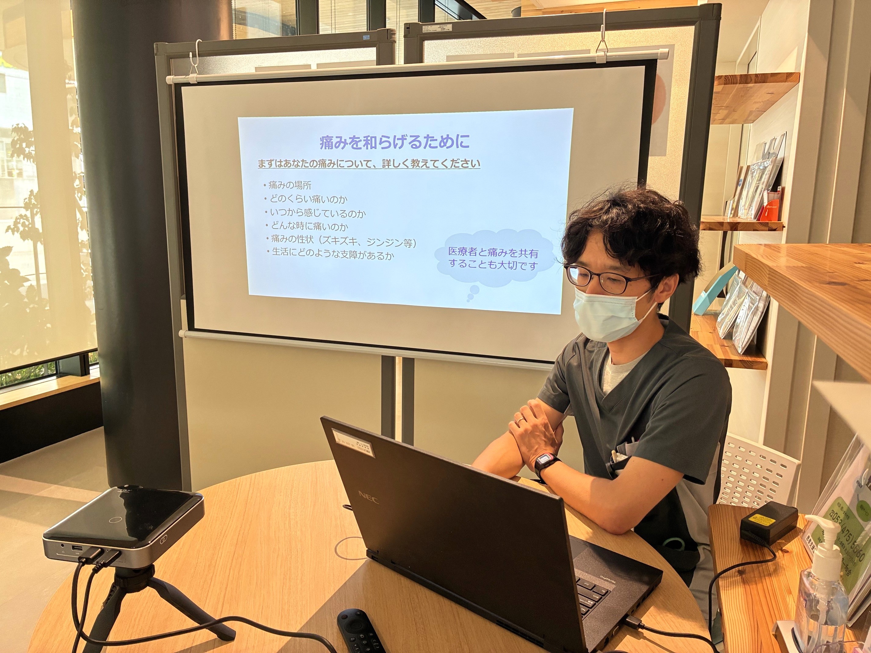 今回は「がんのつらさに対応しようPart①痛み」をテーマに、薬剤師から痛みとの向き合い方についてのミニレクチャーがありました。