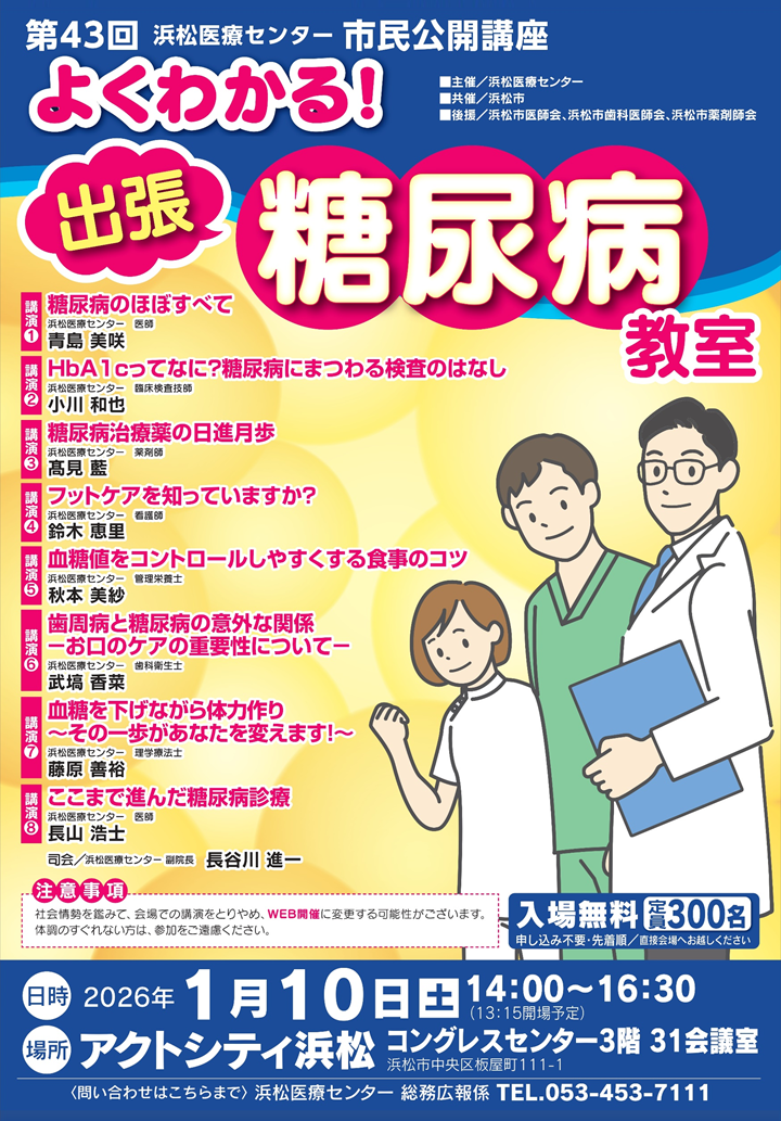 第43回浜松医療センター市民公開講座「よくわかる!出張 糖尿病教室」開催について