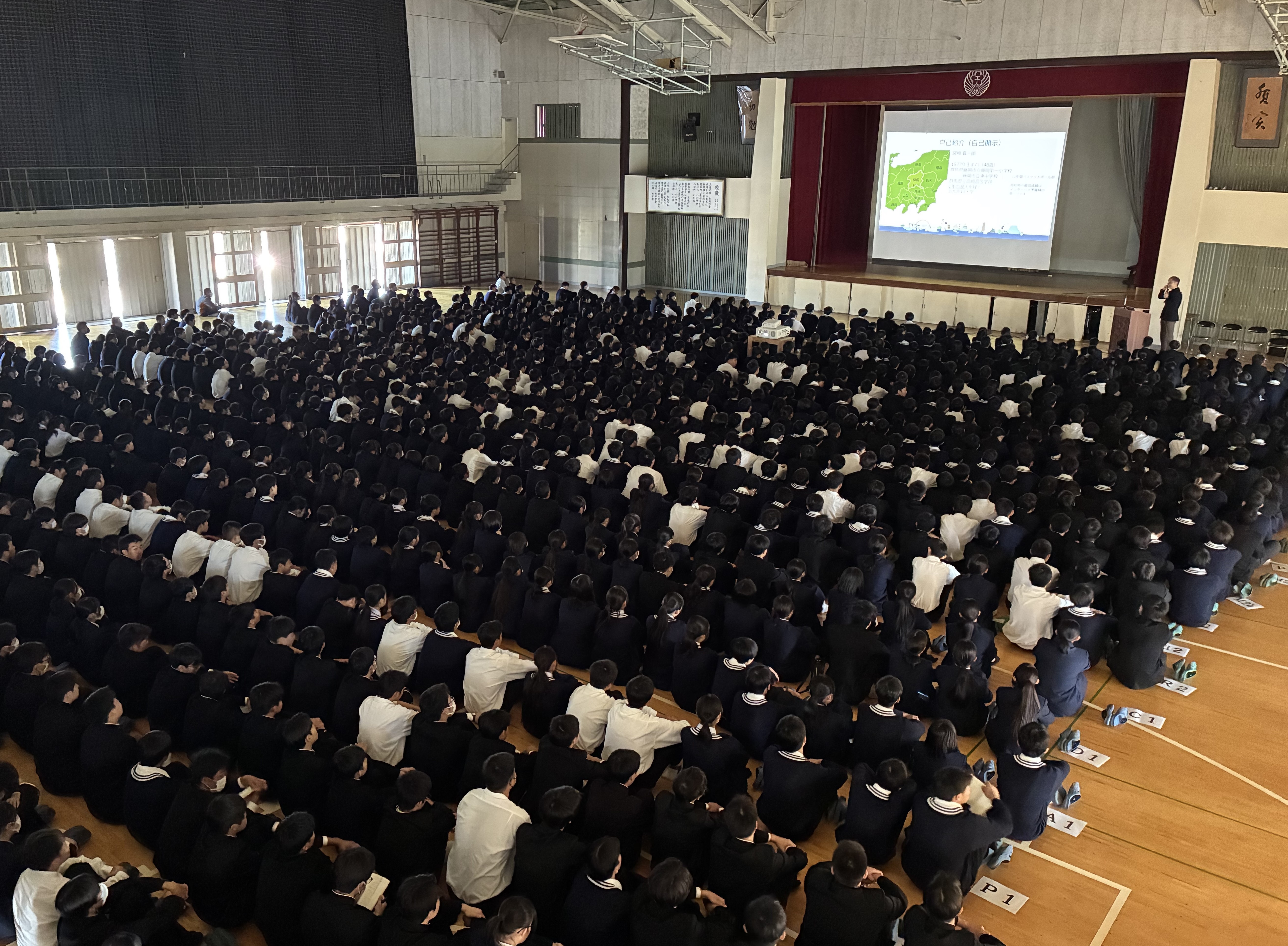 2025年11月17日(月)、県立浜松工業高校にて、当院の緩和医療科部長・宮﨑真一郎が全校生徒1,077人を対象に【がんと緩和ケア】をテーマに「がん教育」を実施しました。