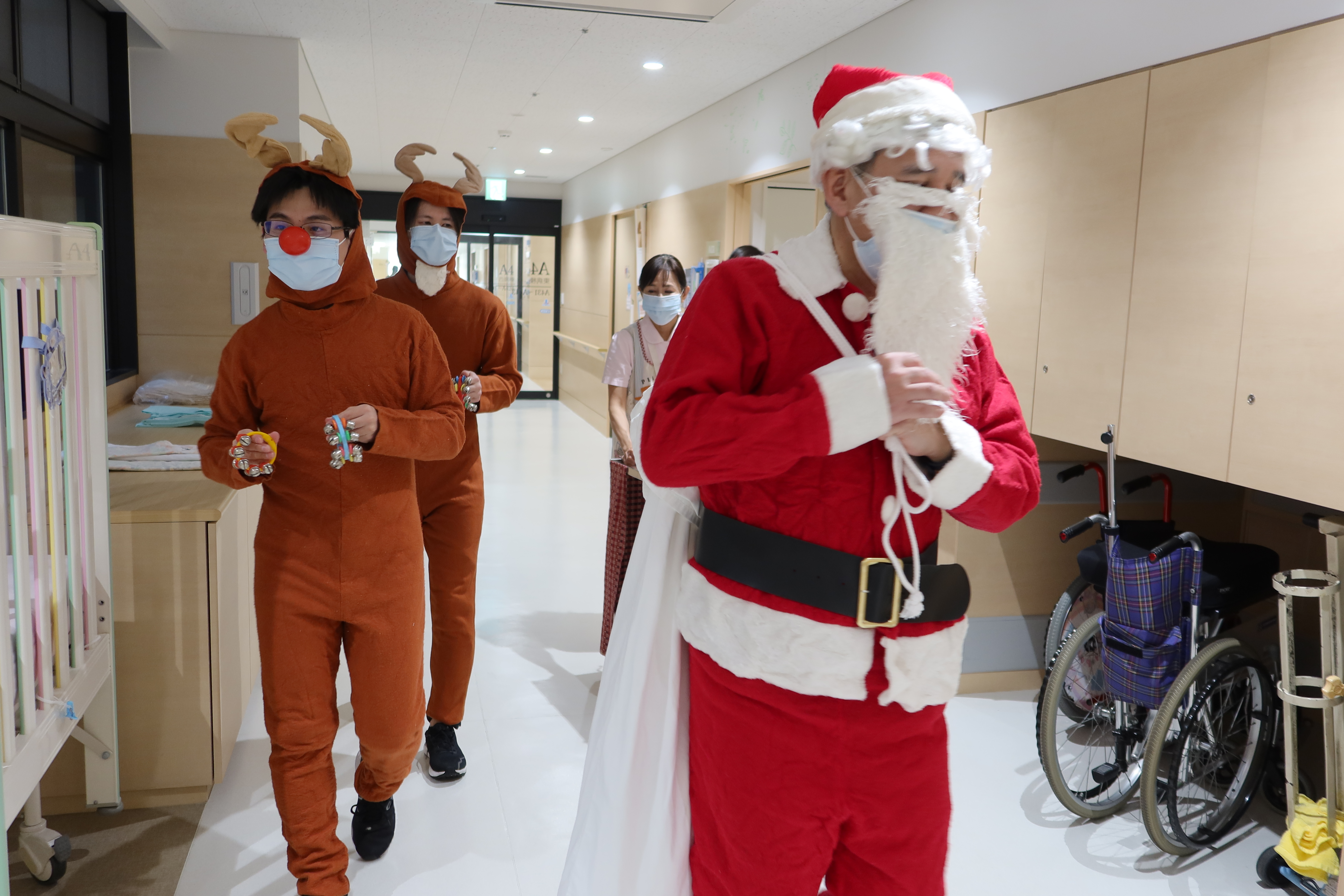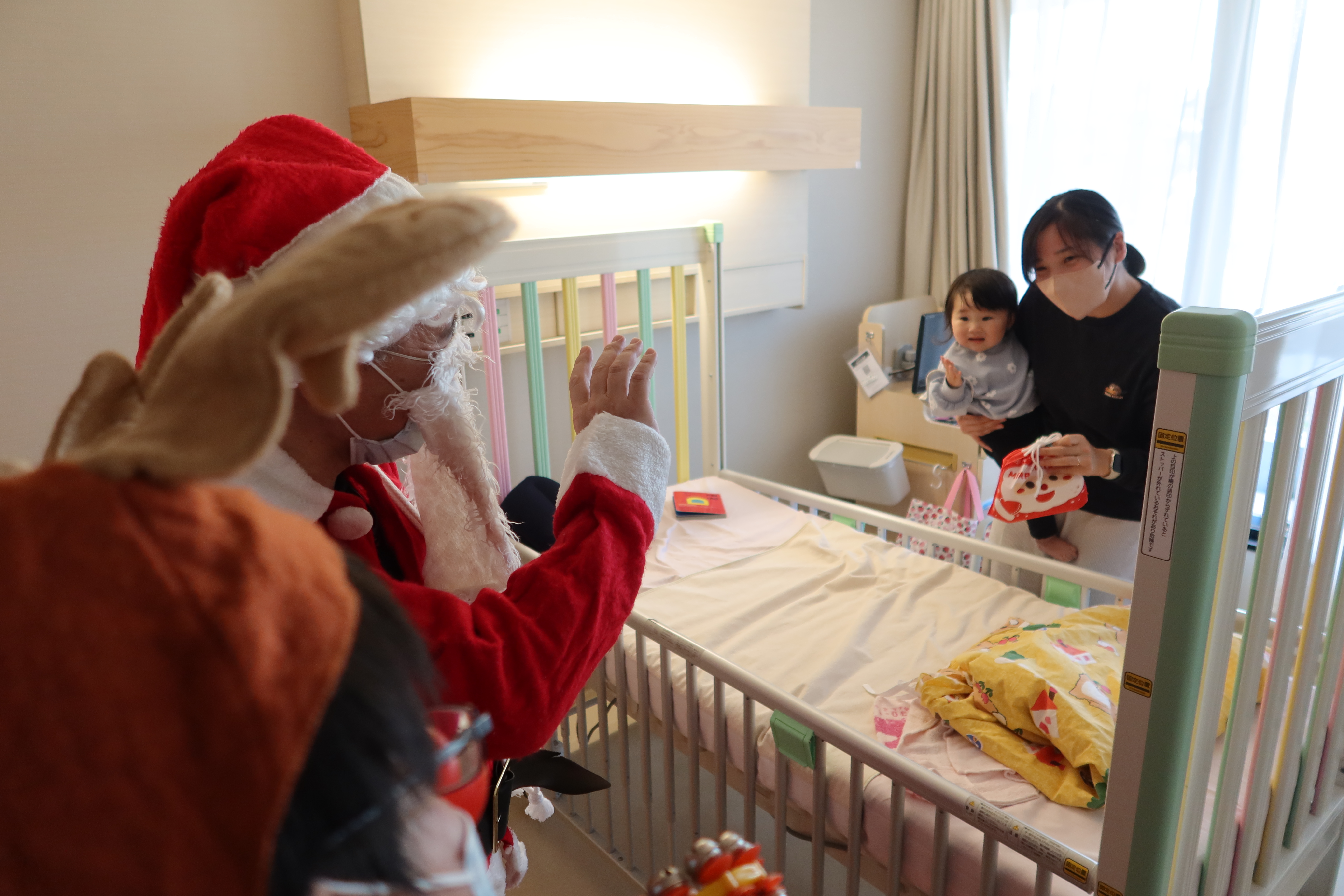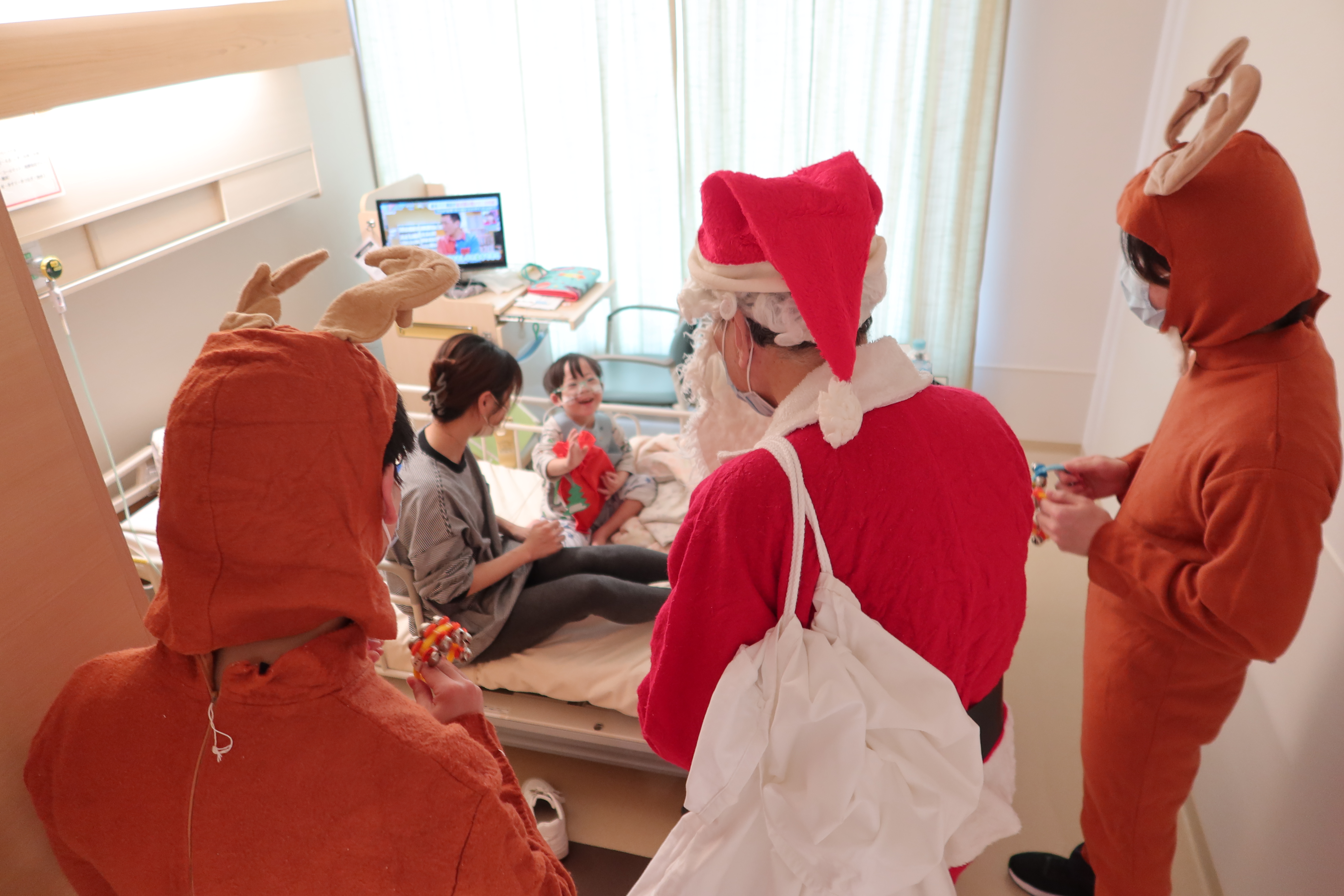 「サンタさんとトナカイさんの登場に、入院中の患者さん・ご家族が笑顔になり、