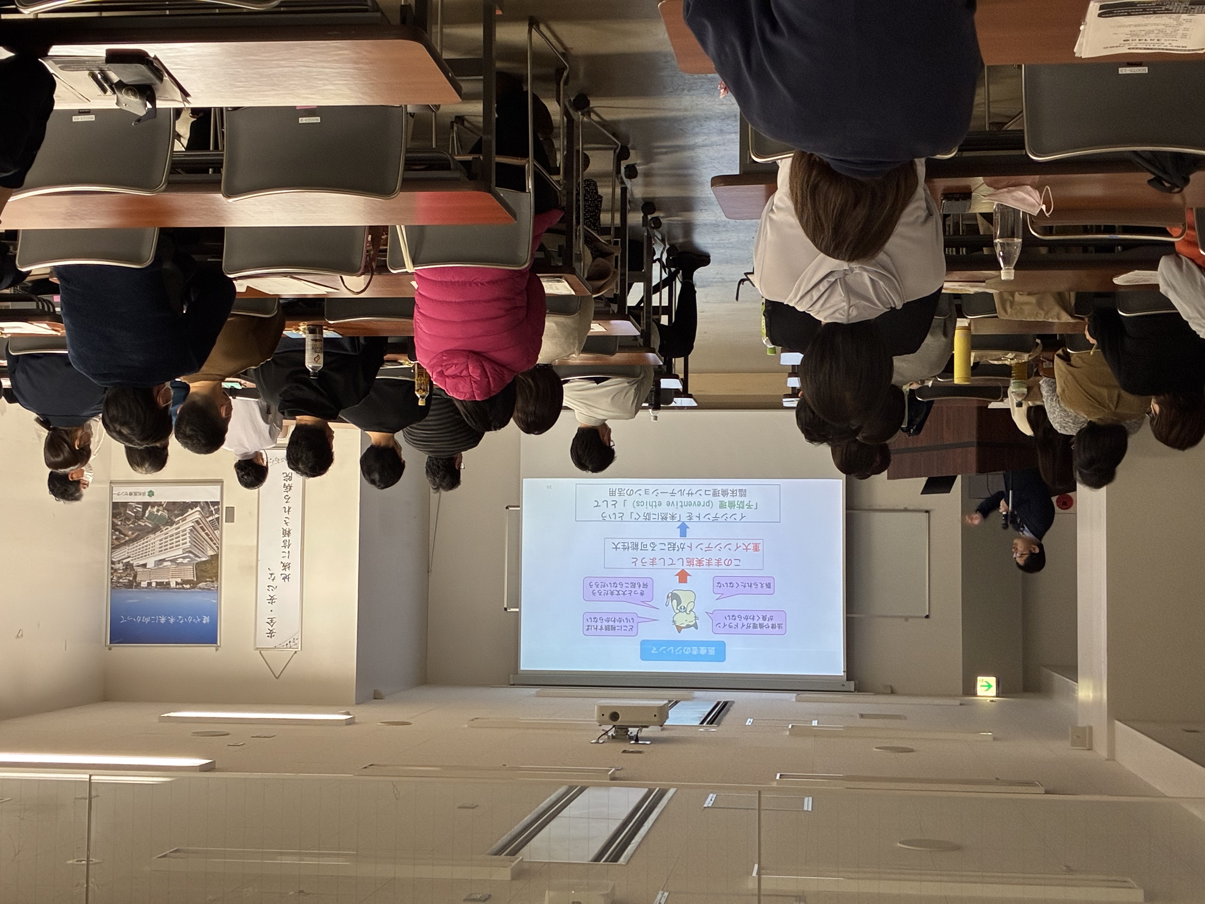 前半のグループワークでは、職場や職種の垣根を越えた活発な意見交換が行われ、終始和やかながらも真剣な熱気に包まれていました。後半の特別講演では、講師として宮崎大学医学部附属病院より板井孝壱郎先生をお招きし、「緩和ケア実践に活かす臨床倫理の考え方」をテーマにご講演いただきました。現場で直面する倫理的課題に対し、どのように向き合い、多職種で意思決定を支えていくべきか、板井先生の深い哲学的・倫理的知見に基づく貴重なお話を伺うことができました。